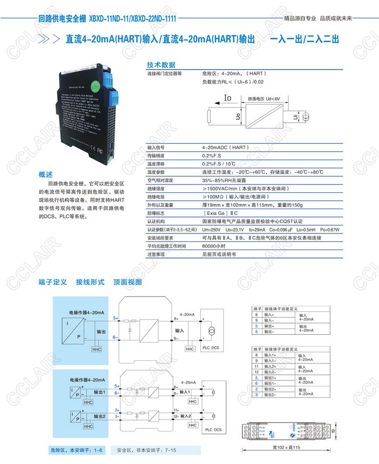 XBXD-11ND-11,XBXD-22ND-1111直流4-20mA輸入/直流4-20mA輸出(一入一出/二入二出)