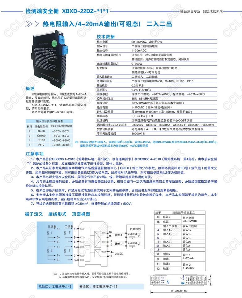 XBXD-22DZ-11熱電偶輸入/4-20mA輸出(可組態(tài))(一入二出)