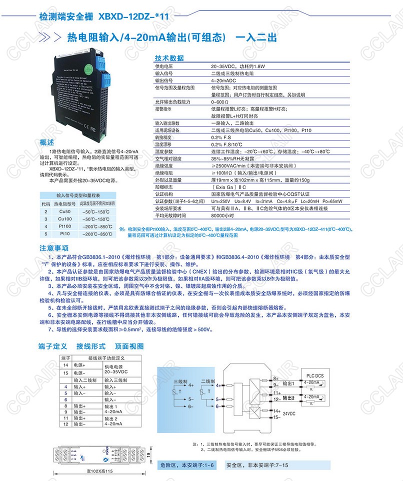 XBXD-12DZ-11熱電阻輸入/4-20mA輸出(可組態(tài))(一入二出)
