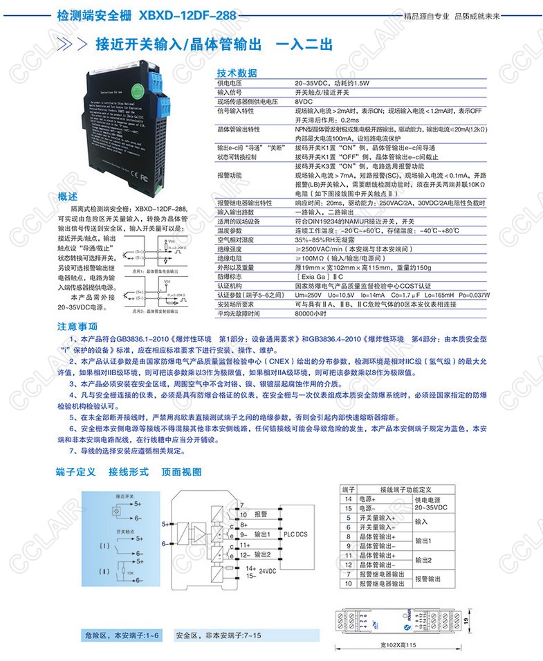 XBXD-12DF-288接近開關(guān)輸入/晶體管輸出(一入二出)