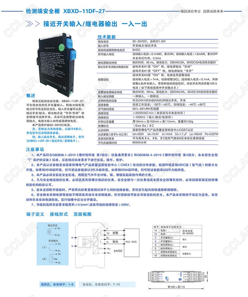 XBXD-11DF-27接近開關(guān)輸入/繼電器輸出(一入一出)
