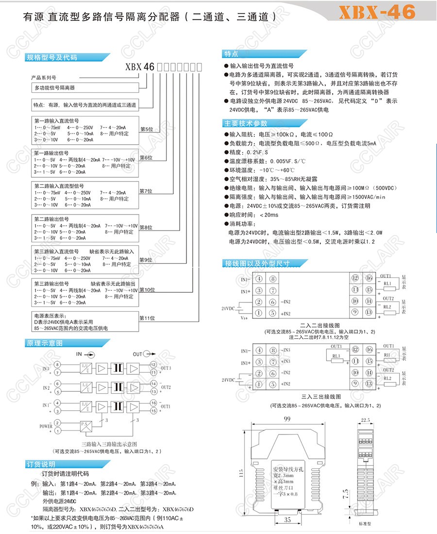 XBX-46-222222,XBX-46-333333,XBX-46-444444,有源直流型多路信號(hào)隔離分配器(二通道 三通道)