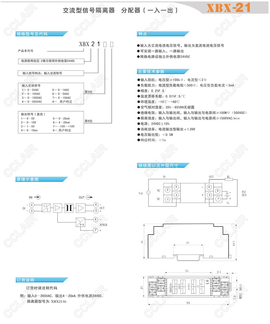 XBX-21,XBX-21-22,XBX-21-33,XBX-21-44,交流型信號(hào)隔離器、分配器(一入一出)