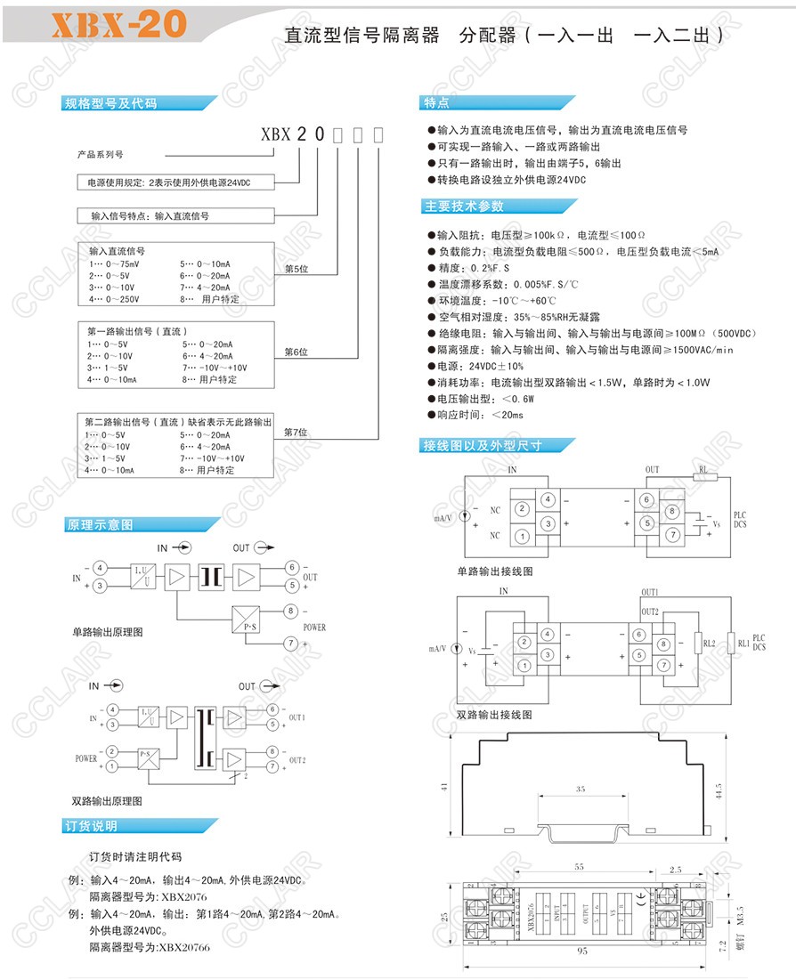 型號: XBX-20,XBX-20-777,XBX-20-888,XBX-20-11,XBX-20-22,XBX-20-33,直流型信號隔離器、分配器(一入一出 一入二出)