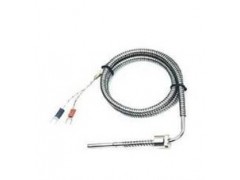 WRET-01 型熱電偶的作用原理,分度特性及允許偏差,參比端(冷接點)溫度補償, 以及與顯示測量儀表的聯(lián)接方法均與一般熱電偶相同。WRET-01型熱電偶的結(jié)構(gòu)如圖所示,由保護管,安裝螺栓.鎖緊卡套,彈簧及熱電偶導(dǎo)線等組成。