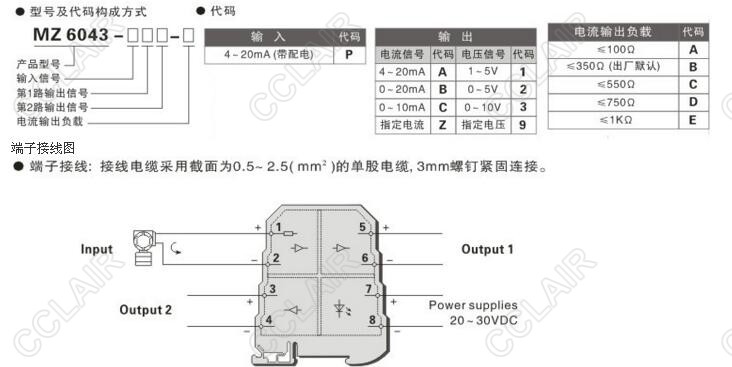 MZ6043,MZ6043-PA1,MZ6043-PB2,MZ6043-PC3,MZ6043-PZ9,隔離配電器 一入二出