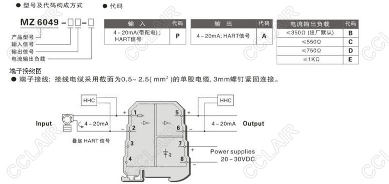 MZ6049 隔離配電器,支持HART信號(hào) 一入一出特性