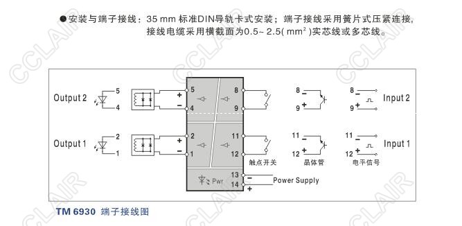 TM6930開(kāi)關(guān)量輸出隔離器端子接線圖