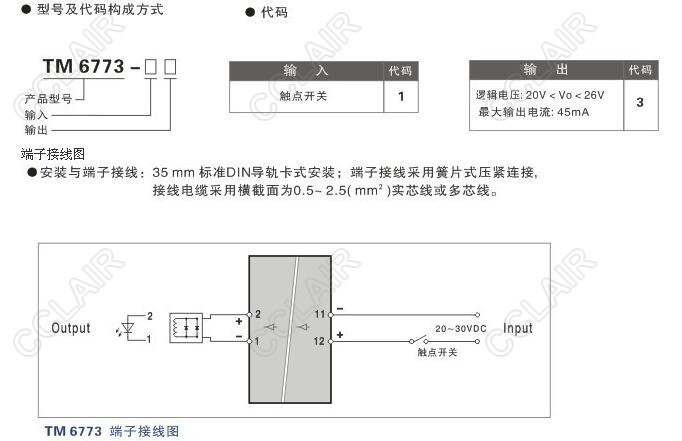 TM6773 開(kāi)關(guān)量輸出,二線制隔離器 一入一出特性