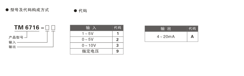 TM6716 直流電壓輸入二線制隔離器 選型、訂貨代碼