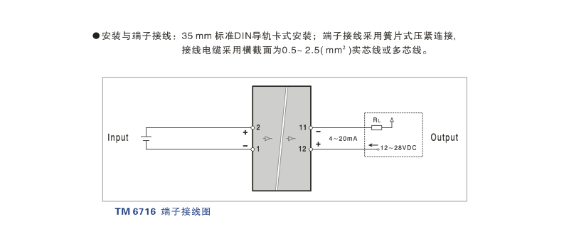 TM6716 直流電壓輸入二線制隔離器 端子接線圖