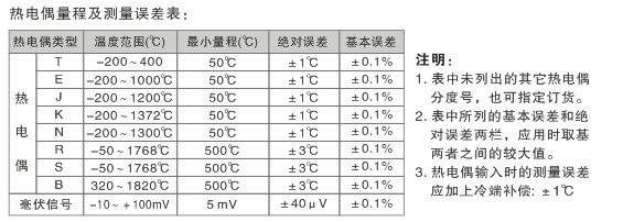 標(biāo)準(zhǔn)精度:±0.1%(參見熱電偶量程及測量誤差表)