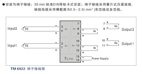 TM6922 熱電偶輸入, 智能溫度變送器 二入二出特性