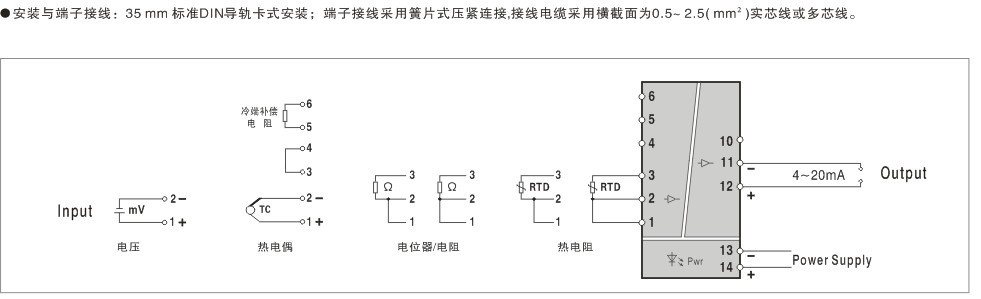 適用于熱電阻、熱電偶、電阻式或電壓傳感器。