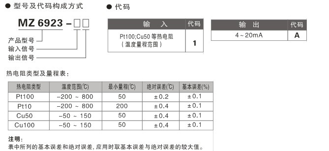 MZ6923 熱電阻溫度變送器 輸出外供電 一入一出特性