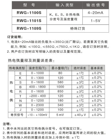 RWG-110□S 模擬熱電偶輸入溫度變送器 一入一出特性