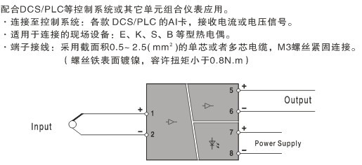 接收來自于現(xiàn)場的熱電偶信號或其它毫伏信號,經(jīng)過隔離, 轉換為固定量程的標準直流信號輸出。