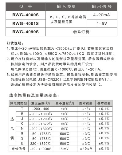 適用于K、E、S、B 等熱電偶或毫伏信號(hào)輸入。