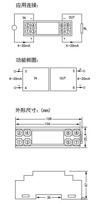 無需外接電源可正常工作,輸入和輸出隔離傳輸精度好,DIN T型標(biāo)準(zhǔn)卡裝方式。