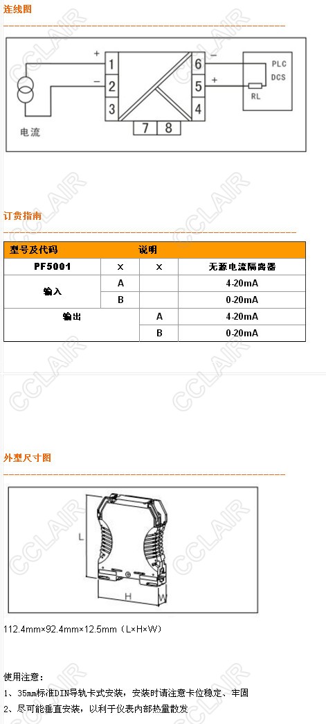 PF5001AA,PF5001AB,PF5001BA,PF5001BB,PF5001無(wú)源電流型超薄隔離