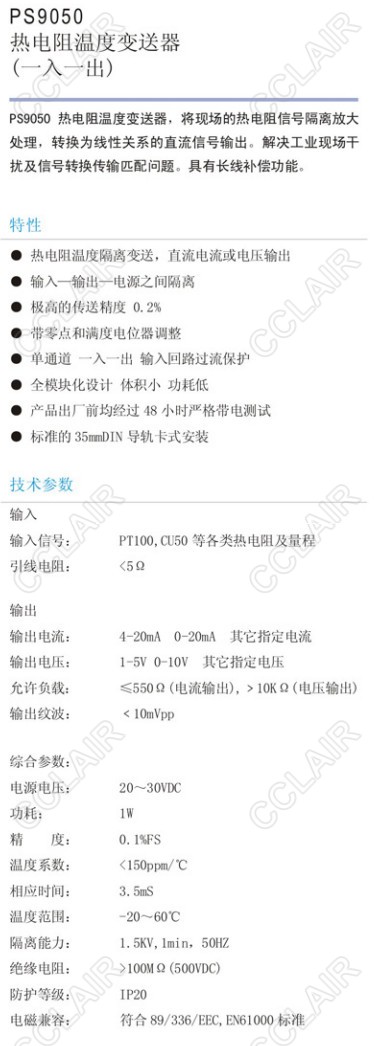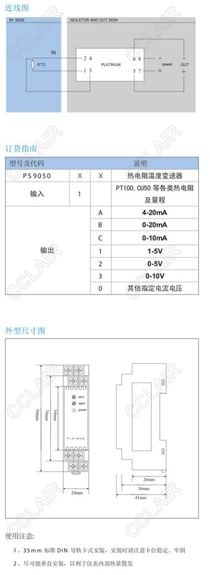 PS90501A,PS90501B,PS90501C,PS905011,PS9050熱電阻溫度變送器(一入一出)