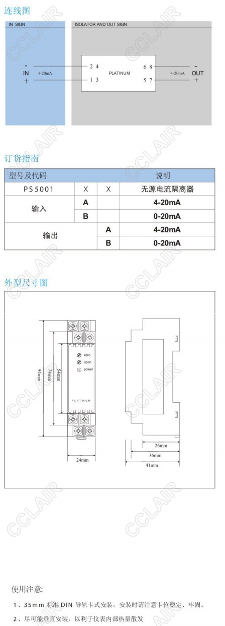 PS5001AA,PS5001AB,PS5001BA,PS5001BB,PS5001無(wú)源電流隔離器(一入一出)
