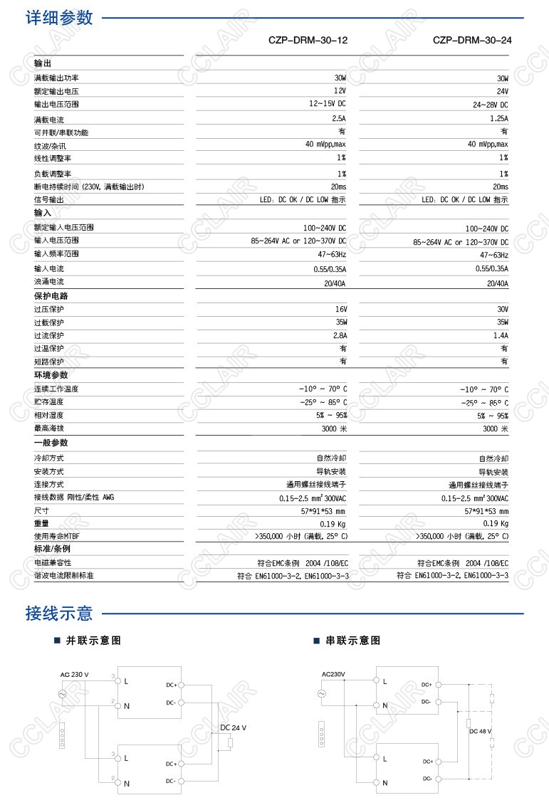CZP-DRM-30-24 導(dǎo)軌型開(kāi)關(guān)電源30W/24V輸出