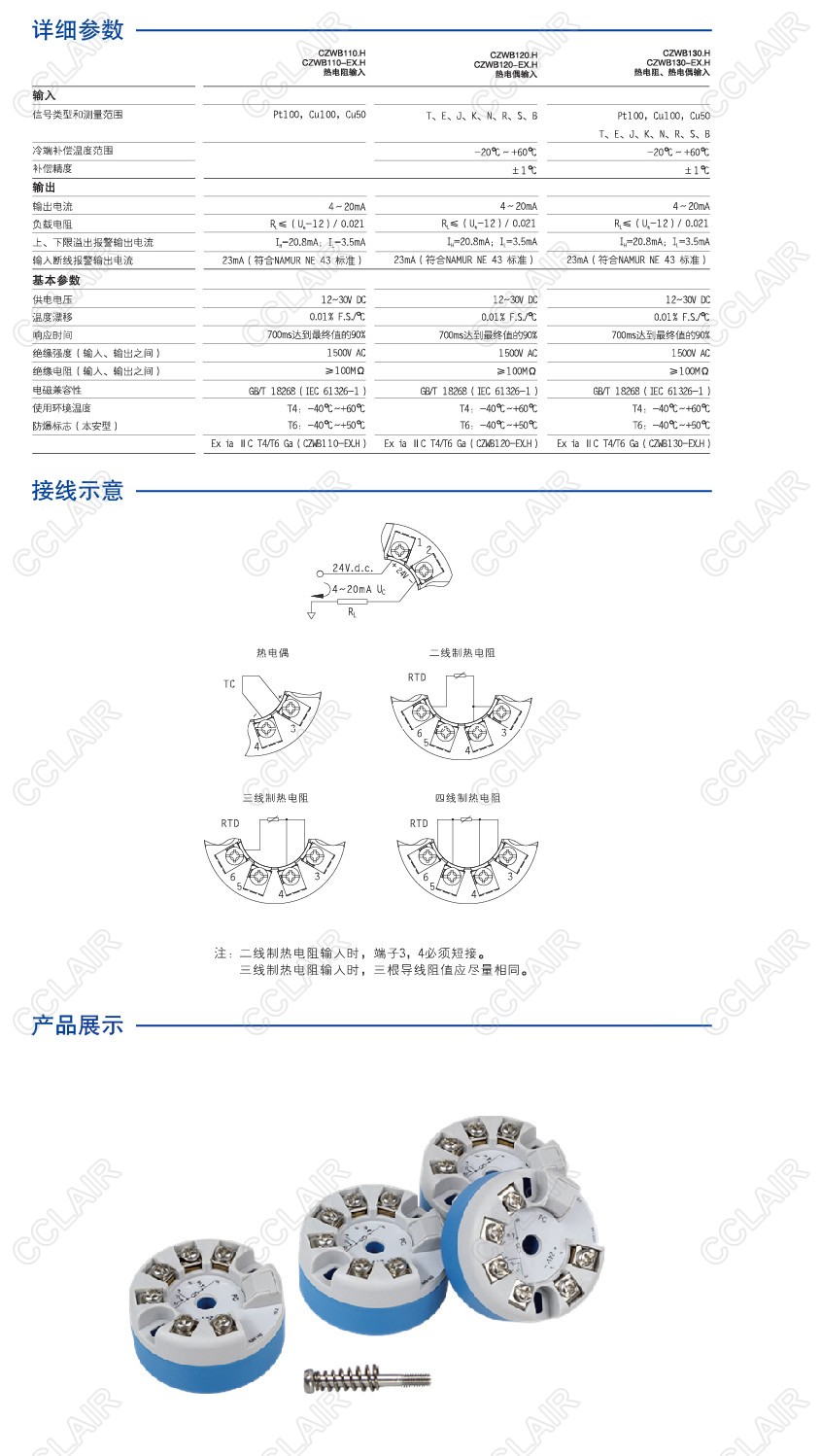 CZWB120-EX.H 熱電偶輸入、HART智能、本安防爆隔離溫度變送器