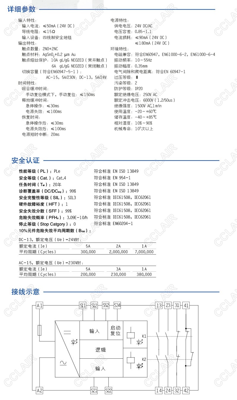 CZSR8301-2A2B(M)是適用于安全地毯輸入,具有2路NO(常開)安全輸出觸點和2路NC(常閉)輔助輸出觸點的安全繼電器。它支持雙通道操作,手動復(fù)位,并具有復(fù)位按鈕監(jiān)控功能。