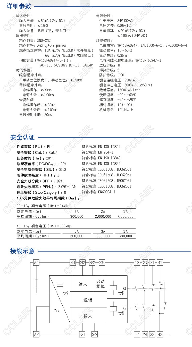CZSR8001-2A2B(M)是適用于急停按鈕、安全門(mén)控開(kāi)關(guān)輸入,具有2路NO(常開(kāi))安全輸出觸點(diǎn)和2路NC(常閉)輔助輸出觸點(diǎn)的安全繼電器。它可選擇單、雙通道操作,手動(dòng)復(fù)位,并具有通道間短路監(jiān)控,復(fù)位按鈕監(jiān)控功能。