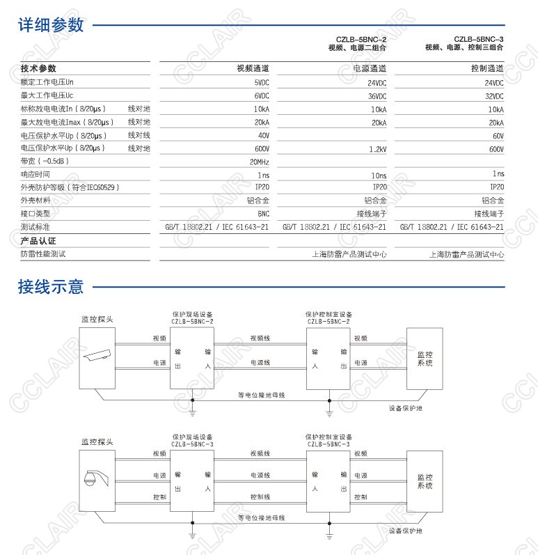 CZLB-5BNC-2,CZLB-5BNC-3, 視頻、電源二組合SPD