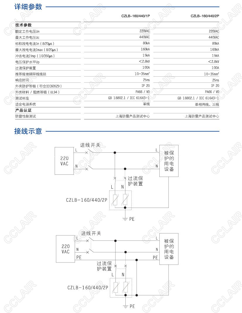 型號: CZLB-160/440/2P 交流電源型SPD(160kA)