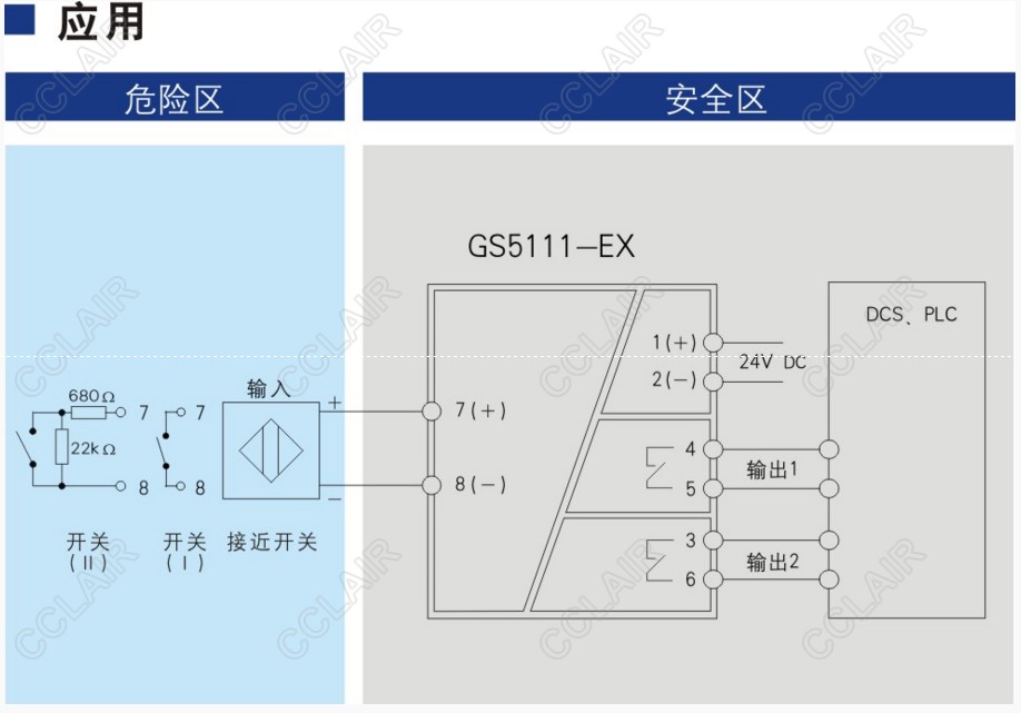 開關(guān)量輸入,繼電器輸出隔離柵,接收來自危險區(qū)的干接點開關(guān)或NAMUR接近開關(guān)輸入,通過安全柵隔離傳輸?shù)桨踩珎?cè)繼電器輸出,各通道可獨立設(shè)置為輸入和輸出同相或反相控制,同時有輸入線路故障檢測報警指示功能。該產(chǎn)品需要獨立供電,電源、輸入和輸出三隔離
