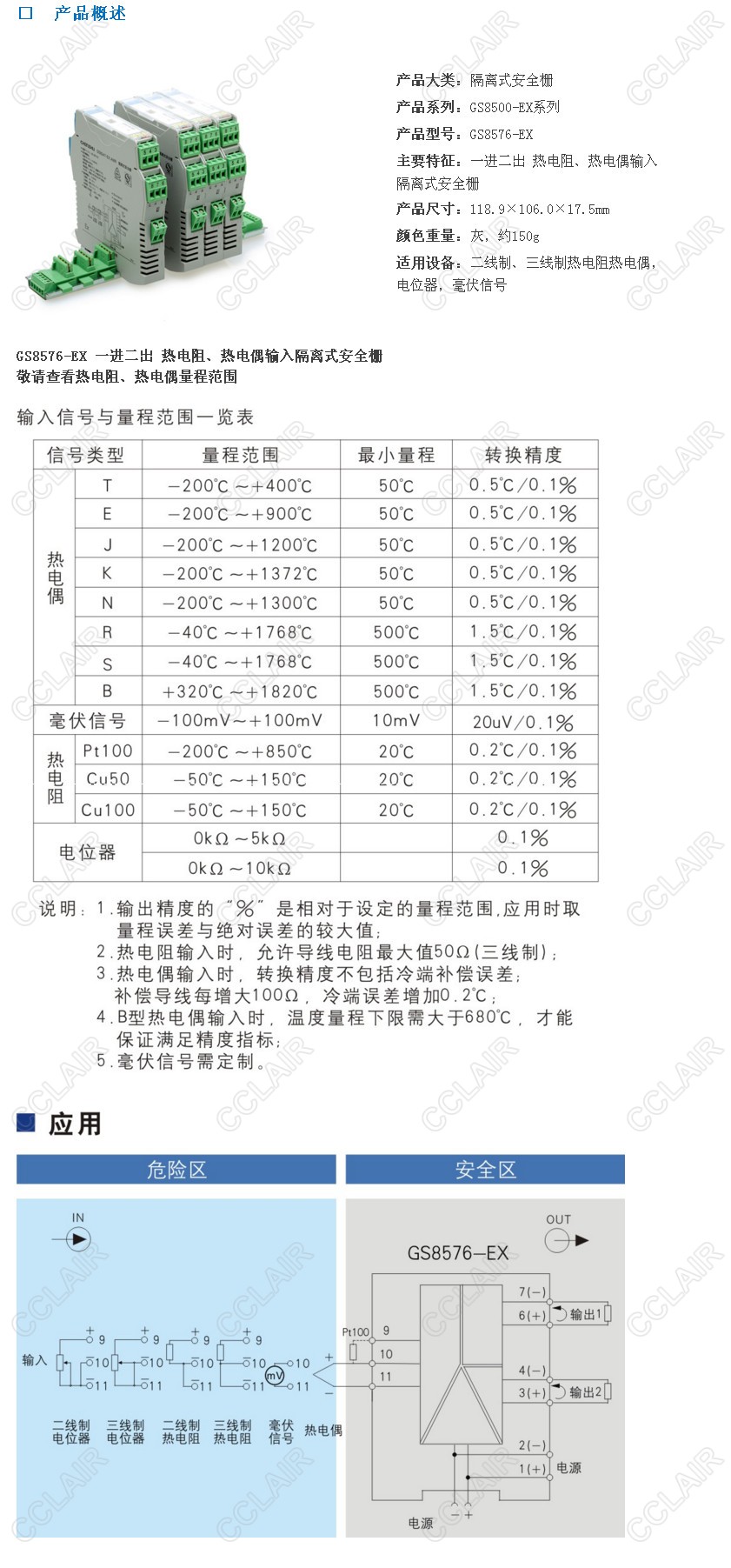 隔離式安全柵,將現(xiàn)場(chǎng)的熱電阻、熱電偶、毫伏信號(hào)、電位器信號(hào)轉(zhuǎn)換成0/4~20mA的電流信號(hào)或0~5V電壓信號(hào),從危險(xiǎn)區(qū)隔離傳送到安全區(qū)。它具有冷端補(bǔ)償功能,是智能型的,可通過(guò)計(jì)算機(jī)對(duì)熱電阻、熱電偶、電位器的分度號(hào)、量程范圍等進(jìn)行組態(tài)。該產(chǎn)品需要獨(dú)立供電,電源、輸入和輸出的三隔離。