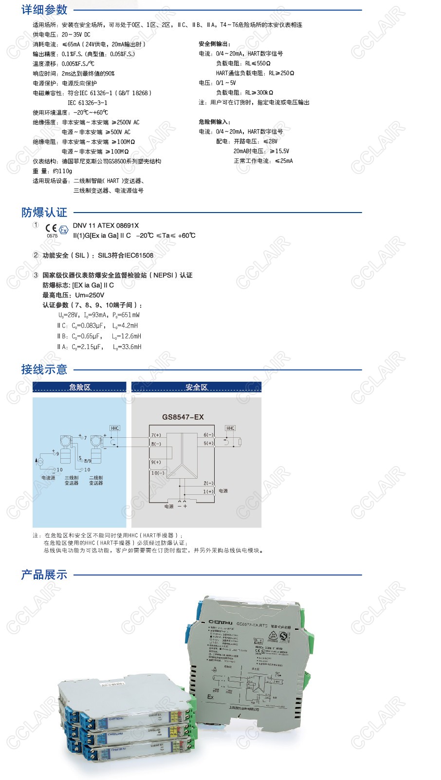 GS8547-EX 一進(jìn)一出 模擬量輸入隔離式安全柵