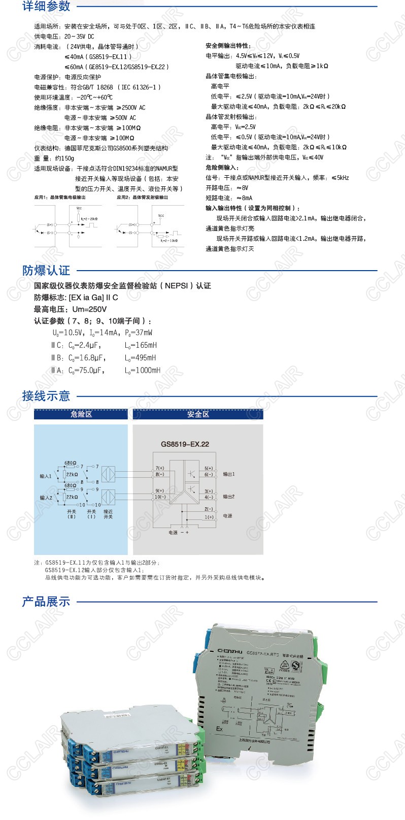 GS8519-EX.22 二進(jìn)二出 開關(guān)量輸入,晶體管輸出隔離式安全柵