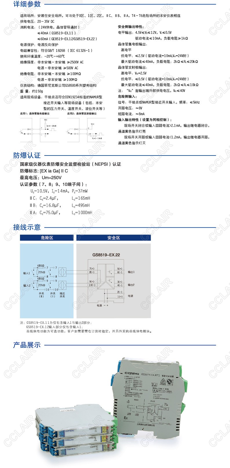 GS8519-EX.11 一進(jìn)一出 開關(guān)量輸入,晶體管輸出隔離式安全柵