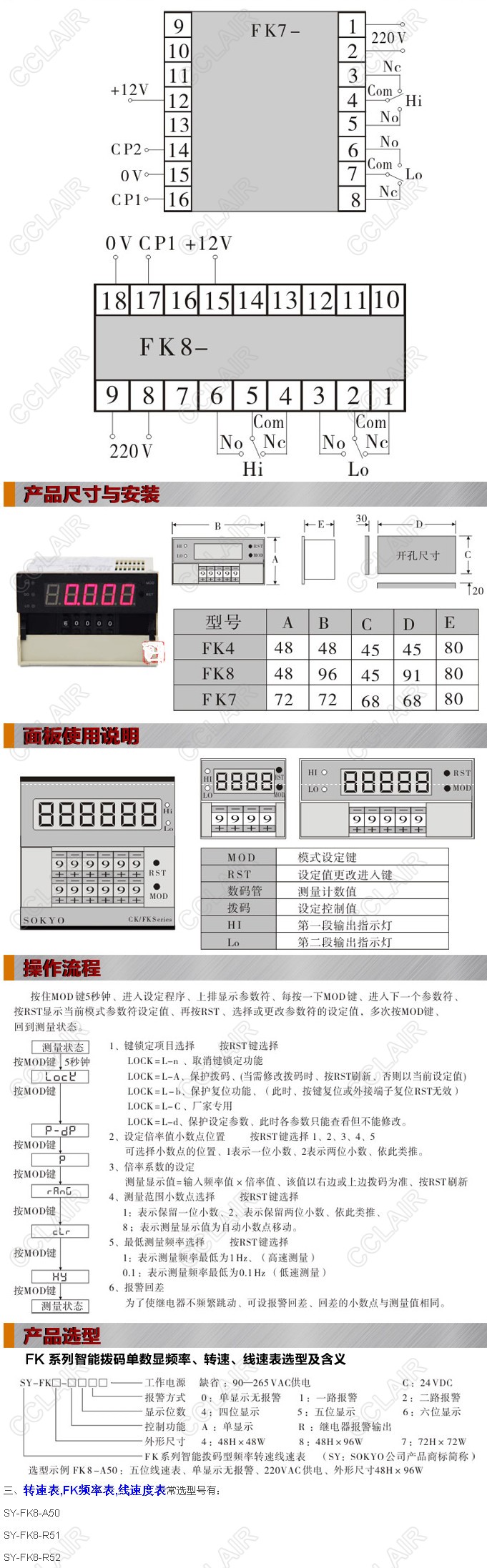型號: SY-FK8-A50,SY-FK8-R51,SY-FK8-R52,SY-FK4-A50,SY-FK4-R51,FK頻率表,線速度表,傳感器配套儀表