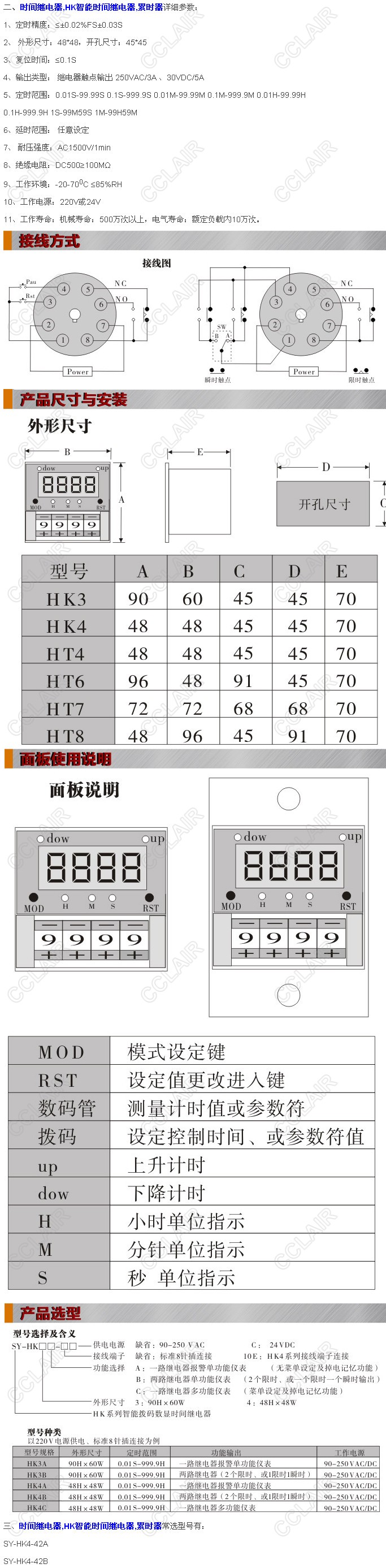 SY-HK4-42A,SY-HK4-42B,SY-HK4-42C,SY-HK3A,SY-HK3B,SY-HK4A,HK智能時間繼電器