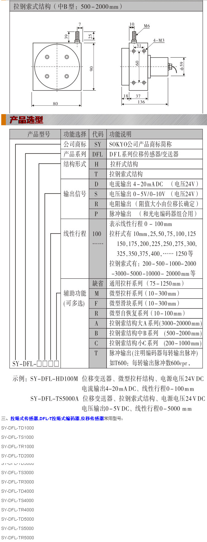 SY-DFL-TD1000,SY-DFL-TS1000,SY-DFL-TR1000,SY-DFL-TD2000,DFL-T拉繩式編碼器