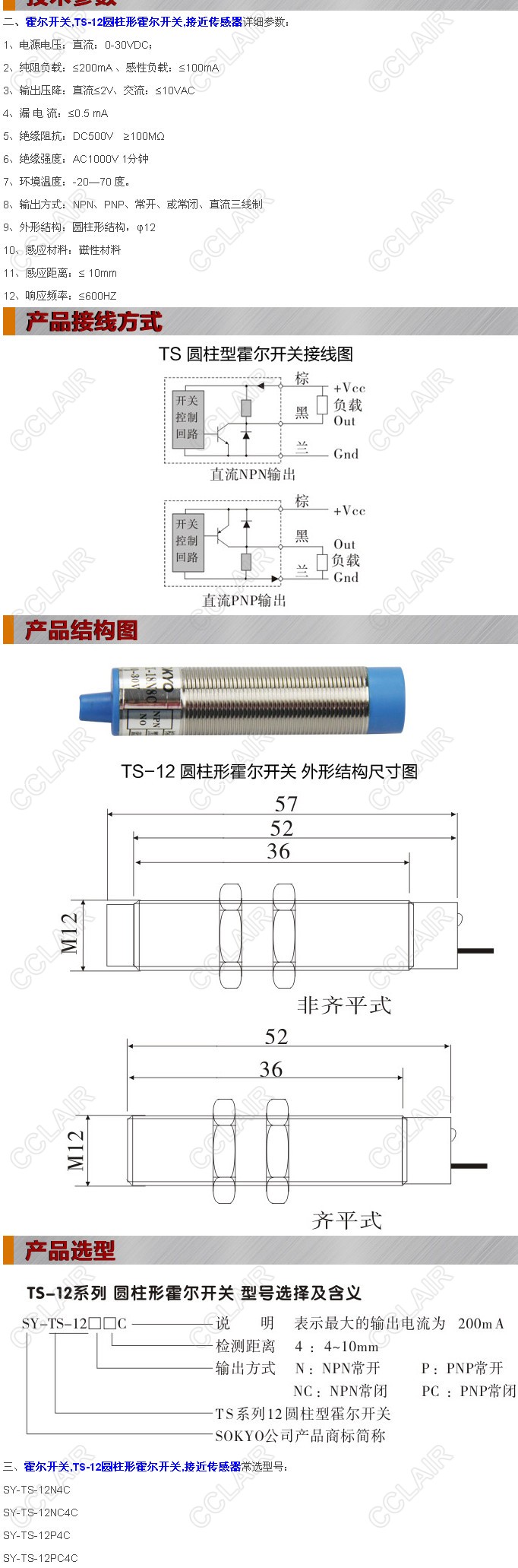 SY-TS-12N4C,SY-TS-12NC4C,SY-TS-12P4C,SY-TS-12PC4C,TS-12N4C,TS-12圓柱形霍爾開(kāi)關(guān)