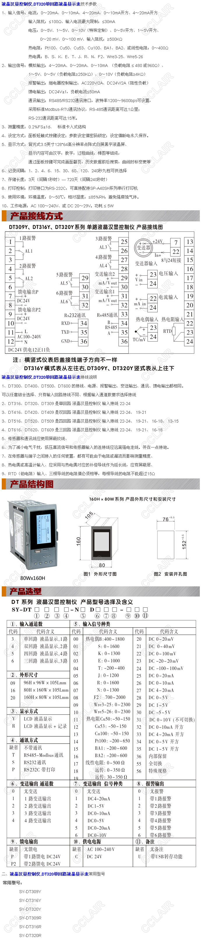 SY-DT320Y,SY-DT320R,SY-DT320YT,SY-DT320RT,SY-DT320YS,DT320單回路液晶顯示控制儀