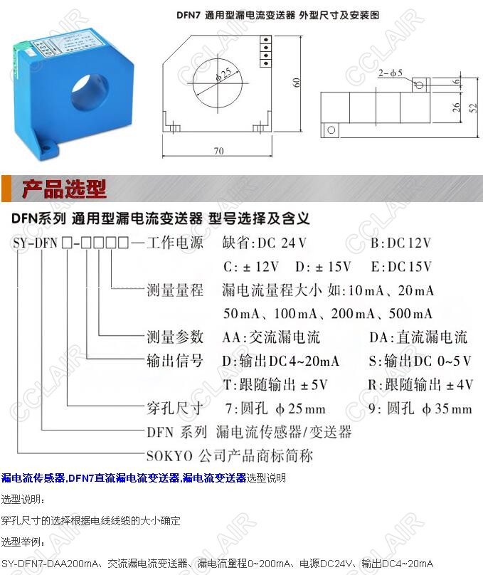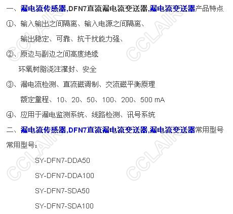 SY-DFN7-DDA500,SY-DFN7-DDA500B,SY-DFN7-DDA500C,SY-DFN7-DDA500D,DFN7直流漏電流變送器