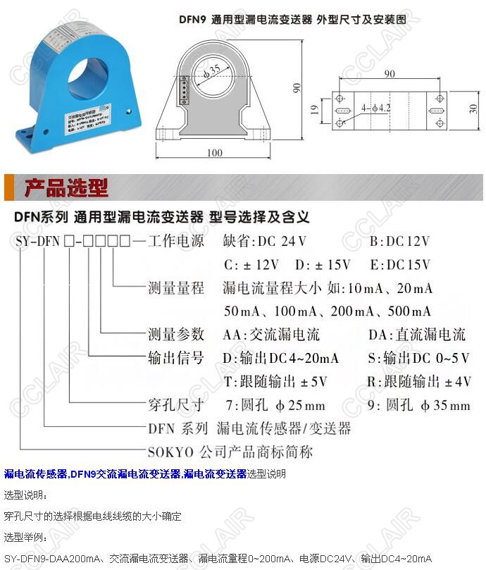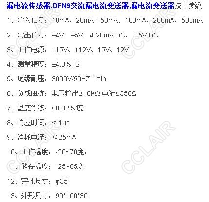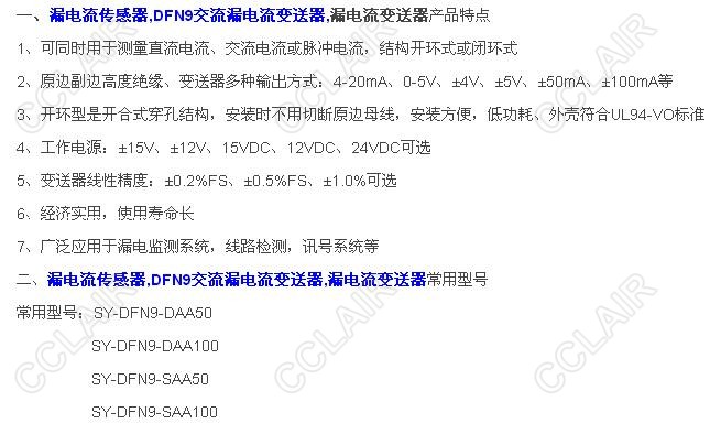 SY-DFN9-DAA500,SY-DFN9-DAA500B,SY-DFN9-DAA500C,SY-DFN9-DAA500D,DFN9交流漏電流變送器