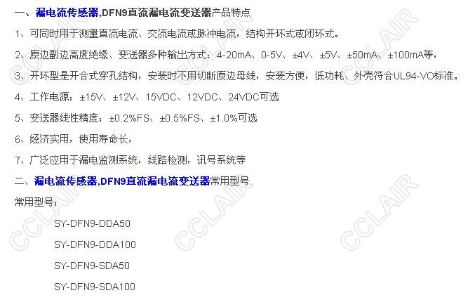 SY-DFN9-DDA500,SY-DFN9-DDA500B,SY-DFN9-DDA500C,SY-DFN9-DDA500D,DFN9直流漏電流變送器