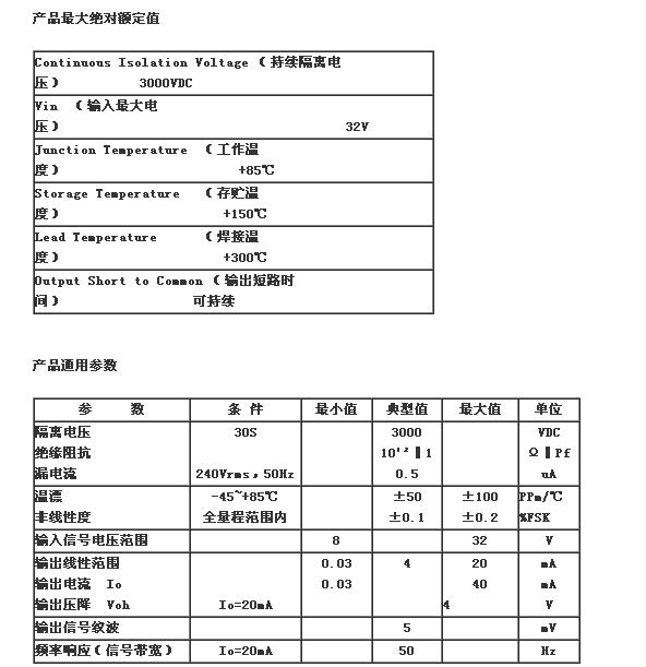·信號輸入、輸出3000VDC隔離電壓 ·隔離4-20mA或0-20mA信號傳輸