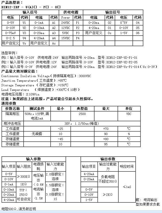 DIN12, DIN12-IBF-U2-P1-O1,DIN12-IBF-U2-P2-O5,模擬信號(hào)隔離變送器