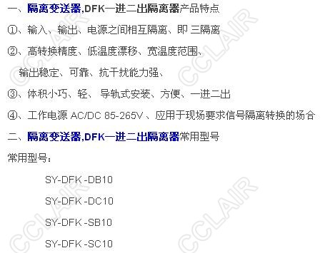 SY-DFK-DB10,SY-DFK-DC10,SY-DFK-SB10,DFK-DB10,DFK-DC10,DFK一進二出信號隔離器