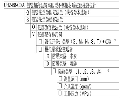 型號(hào): UHZ-68-C0A磁翻柱液位計(jì)/側(cè)裝超高溫特高壓型