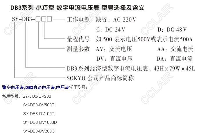 SY-DB3-DV200,SY-DB3-DV500D,SY-DB3-DV100D,DB3-DV200,DB3-DV500D,DB3直流電壓表